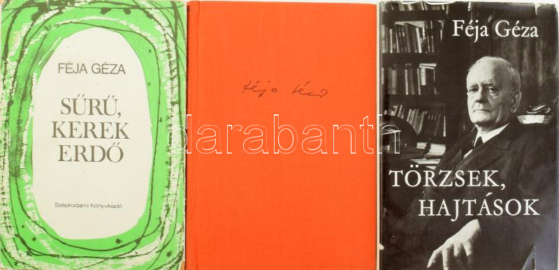 Féja Géza 3 könyve: Bölcsődal. Életregény. Bp., 1958, Magvető. Kiadói egészvászon-kötés. Megjelent 5200 példányban. + Sűrű, kerek erdő. Zsoldos Vera rajzaival. Bp., 1976, Szépirodalmi Könyvkiadó. Kiadói egészvászon-kötés, kissé sérült kiadói papír védőborítóban, a védőborító részben hozzáragadt a borítóhoz. + Törzsek, hajtások. Bp., 1978, Szépirodalmi Könyvkiadó. Kiadói egészvászon-kötés, kissé sérült kiadói papír védőborítóban.