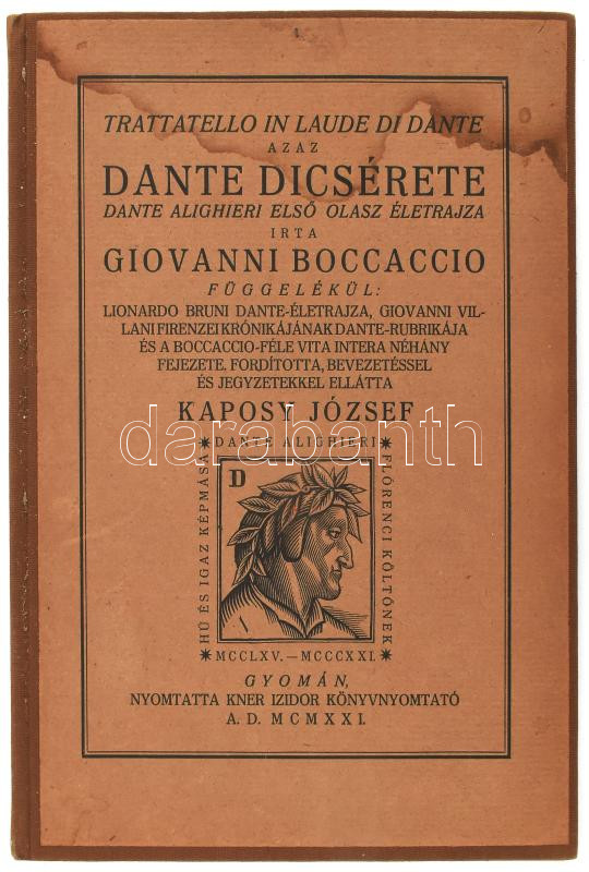 Giovanni Bocaccio: Trattatello in laude di Dante, azaz Dante dicsérete... https://www.darabanth.com/en/475-Online-auction/475.0/Books/Books-Other-rarities~1000037/Giovanni-Bocaccio-Trattatello-in-laude-di-Dante-azaz-Dante-dicserete-Dante-Alighieri-elso-olasz~II3137327