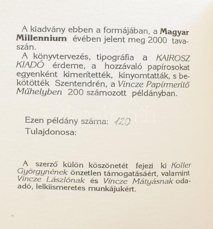 Gyurkovics Tibor: Ballada a rendszerváltásról. Károlyi András illusztrációival. Bp., 2000, Kairosz, (Szentendre, Vincze Papírmerítő Műhely, 72+2 p. Bibliofil kiadás, merített papíron. Kiadói zsinórfűzött papírkötés, szép állapotban. Számozott (120./200) példány.