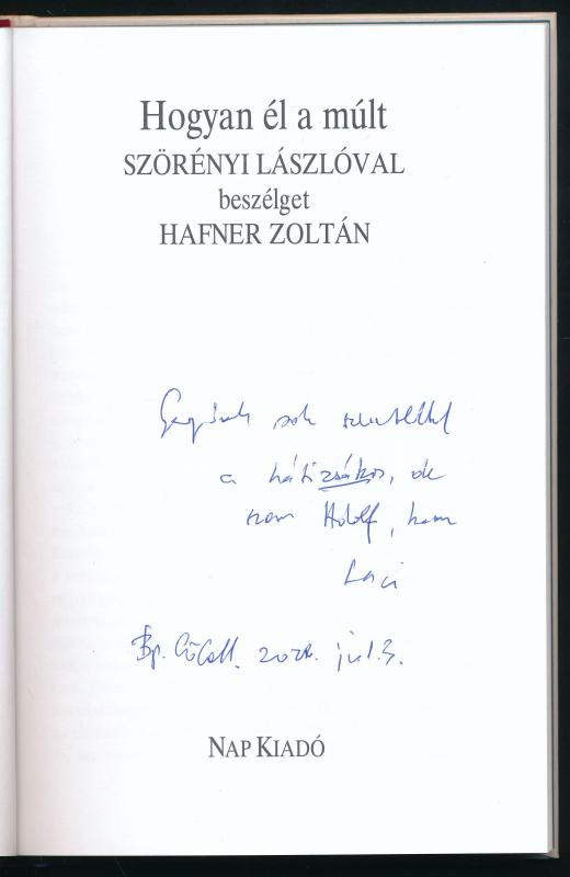Hogyan él a múlt. Szörényi Lászlóval beszélget Hafner Zoltán. (Dedikál... https://www.darabanth.com/en/475-Online-auction/475.0/Books/Books-Other-rarities~1000037/Hogyan-el-a-mult-Szorenyi-Laszloval-beszelget-Hafner-Zoltan-Dedikalt-Bp-2020-Nap-Ki~II3189401