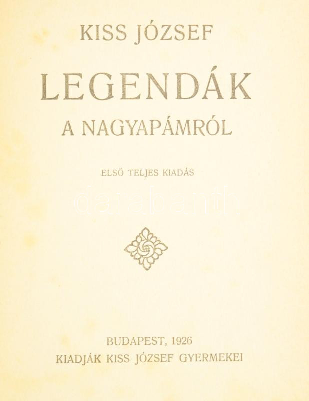 https://www.darabanth.com/en/475-Online-auction/475.0/Books/Books-Other-rarities~1000037/Kiss-Jozsef-Legendak-a-nagyapamrol-Elso-kiadas-Bp-1926-Kiss-Jozsef-Gyermekei-Kiadoi-e~II3229508