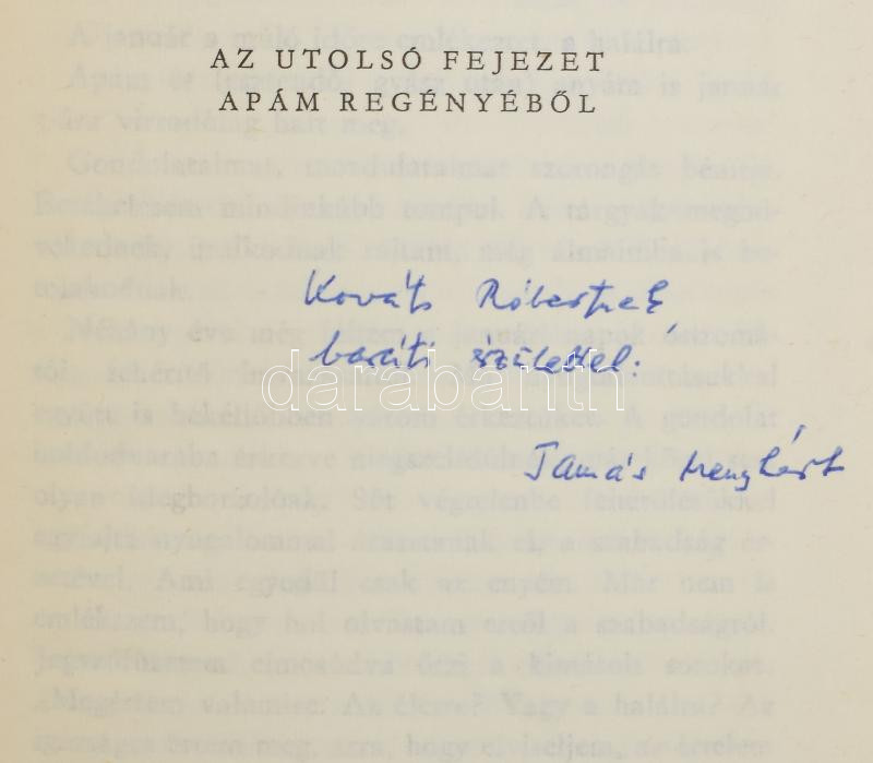 Tamás Menyhért: Vigyázó Madár. Az utolsó fejezet apám regényéből. Bp.,... https://www.darabanth.com/en/475-Online-auction/475.0/Books/Books-Other-rarities~1000037/Tamas-Menyhert-Vigyazo-Madar-Az-utolso-fejezet-apam-regenyebol-Bp-1981-Szepirodalmi~II3229536