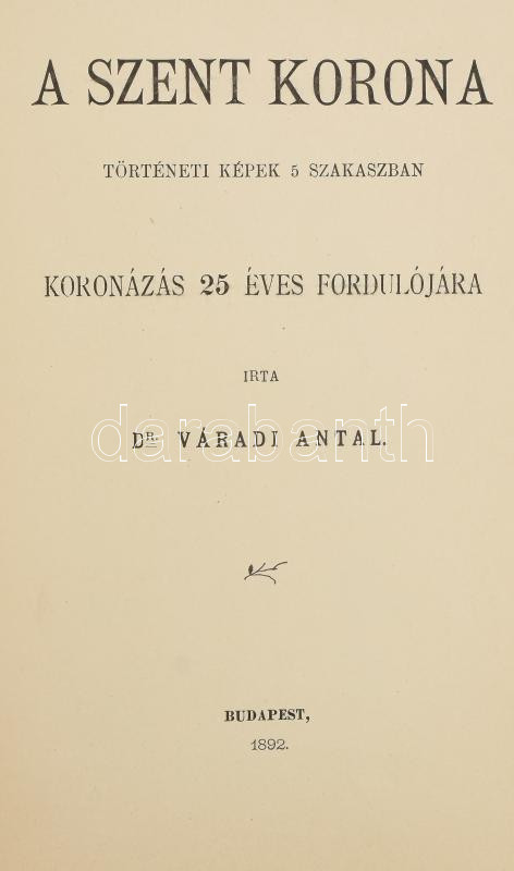 Váradi Antal: A Szent Korona. Történeti képek 5 szakaszban. Koronázás ... https://www.darabanth.com/en/475-Online-auction/475.0/Books/Books-Other-rarities~1000037/Varadi-Antal-A-Szent-Korona-Torteneti-kepek-5-szakaszban-Koronazas-25-evfordulojara-Bp~II3231057