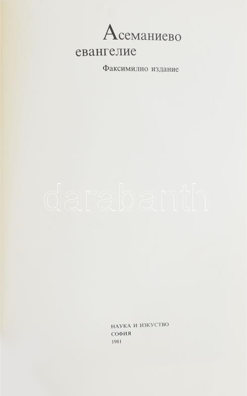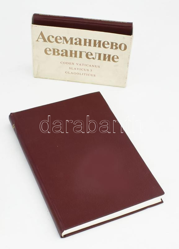 Description: Asemani's Gospel. Codex Vaticanus Slavicus 3 Glagoliticus. Old-Bulgarian glagolitic monument from the Xth century. Fakszimile és művészettörténeti tanulmány. Szofia, 1981, Science and Art Publishing House. Bolgár nyelven. Kiadói műbőr-kötések, a "kisebb" kötet kiadói tokban, egy kötet hiánnyal, 28x20 cm, 20x14 cm.