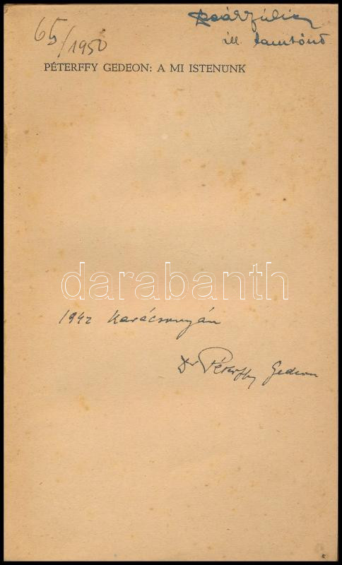 https://www.darabanth.com/en/475-Online-auction/475.0/Books/Books-Religion~1000031/Peterffy-Gedeon-A-mi-istenunk-DEDIKALT-Bp-1942-Korda-Rt-Kiadoi-papirkotes-foltos-b~II3228586