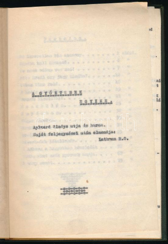 Description: Robert O. Lathman: A győztesek egyike. Aylward Gladys utja és harca. Saját feljegyzései után elmondja: - - -. Gépelt, egészvászon-kötésben, azonosítatlan fordító munkája, 4+93 p.