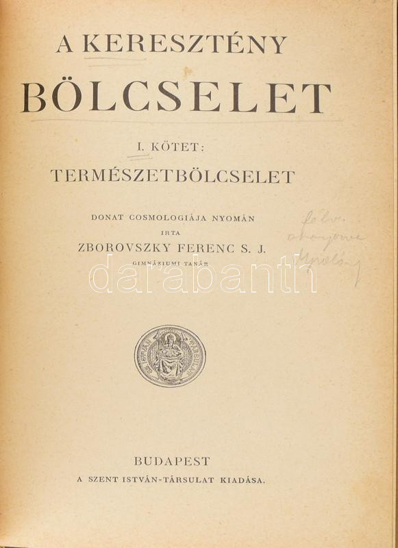 Zborovszky Ferenc: A keresztény bölcselet. I. kötet: Természetbölcsele... https://www.darabanth.com/en/475-Online-auction/475.0/Books/Books-Religion~1000031/Zborovszky-Ferenc-A-kereszteny-bolcselet-I-kotet-Termeszetbolcselet-Donat-cosmologiaja-n~II3223016