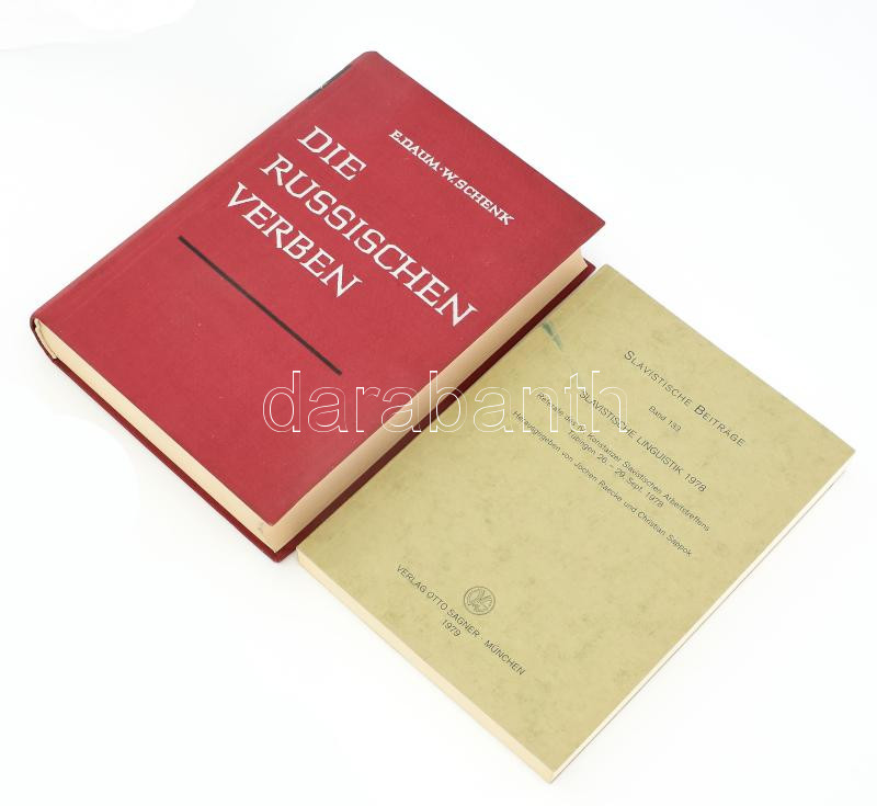 2 db könyv szlavisztika és orosz nyelv témában: Raecke, Jochen; Sappok, Christian (szerk.): Slavistische Linguistik 1978. Referate des IV. Konstanzer slavistischen Arbeitstreffens, Tübingen, 26. - 29. Sept.1978. München, 1979, Otto Sagner. 178 p. Kiadói papírkötés, jó állapotban. A kiadó kísérőlevelével + Daum, E. / Schenk, W.: Die russischen Verben. Lipcse, é.n., Enzyklopädie. 3., változatlan kiadás. 798 p. Kiadói egészvászon-kötés, jó állapotban