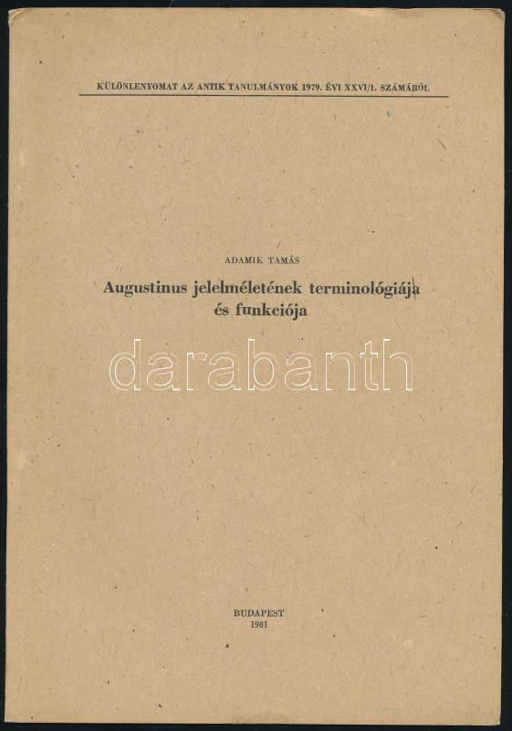 Adamik Tamás: Augustinus jelelméletének terminológiája és funkciója. A... https://www.darabanth.com/en/475-Online-auction/475.0/Books/Books-Social-sciences~1000027/Adamik-Tamas-Augustinus-jelelmeletenek-terminologiaja-es-funkcioja-A-szerzo-Adamik-Tamas~II3226176