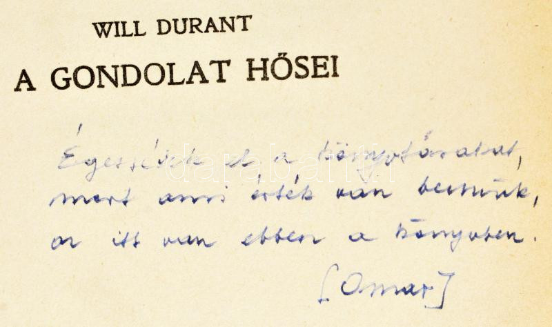 Will Durant: A gondolat hősei. A magyar filozófusokról szóló részt írt... https://www.darabanth.com/en/475-Online-auction/475.0/Books/Books-Social-sciences~1000027/Will-Durant-A-gondolat-hosei-A-magyar-filozofusokrol-szolo-reszt-irta-Halasy-Nagy-Jozsef-~II2965365