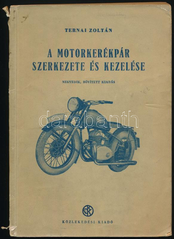 Ternai Zoltán: A motorkerékpár szerkezete és kezelése. Bp., 1954, Közlekedési Kiadó. Negyedik, bővített kiadás. Számos fekete-fehér ábrával illusztrálva. Kiadói papírkötés, sérült gerinccel.