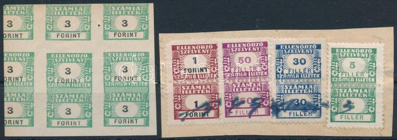 Számla illetékbélyeg 3Ft 9-es tömb + 4 klf Ellenőrző szelvény pár