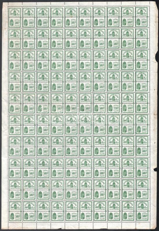 Számlailleték bélyeg 1946 500P 100-as teljes ív (90.000)