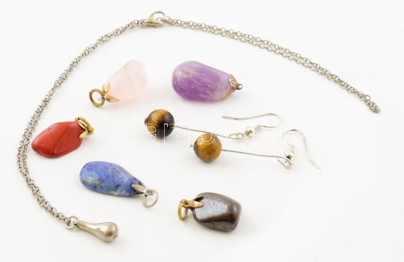 5 darab ásvány medál, fülbevaló pár + ezüst (Ag) nyaklánc