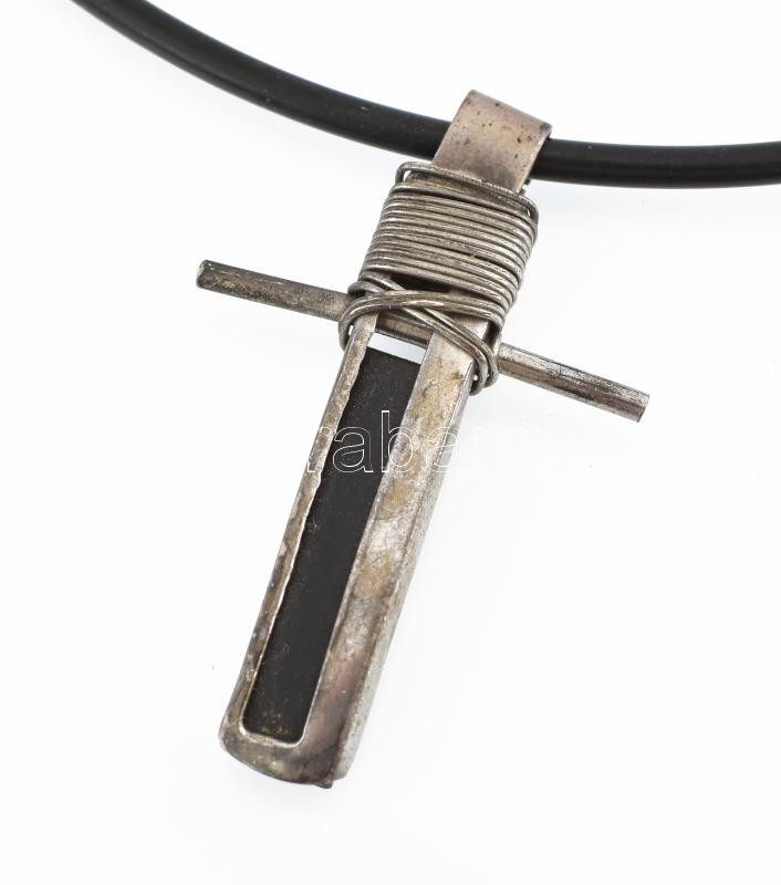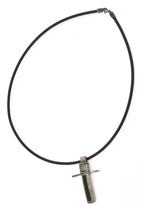 Ezüst (Ag) és bőr nyaklánc. Jelzett. Medál 5 cm