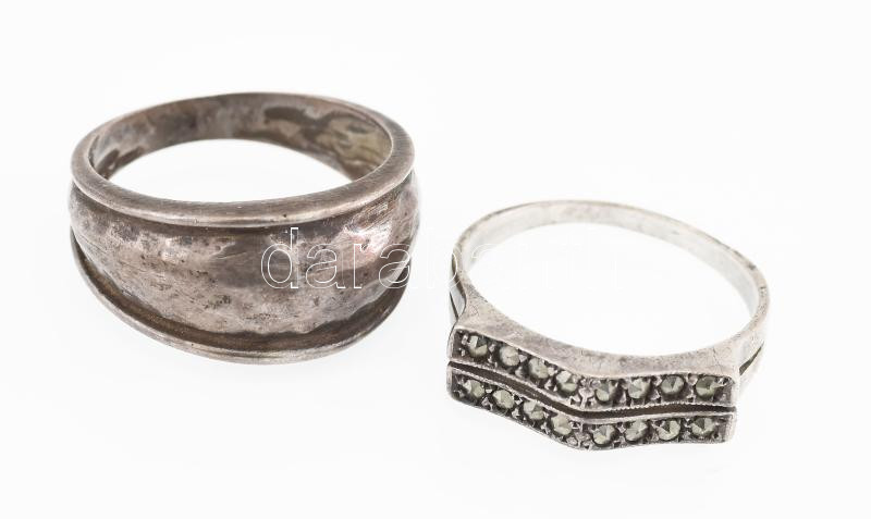 Ezüst (Ag) gyűrű, 2 db, jelzéssel és jelzés nélkül, méret: 52, 54, bru...