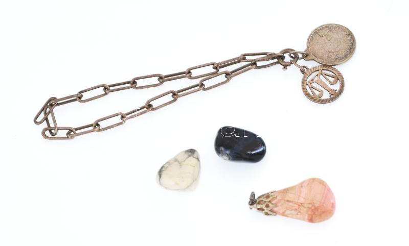 Ezüst (Ag) medálos karkötő 6,7g + 3 darab ásvány