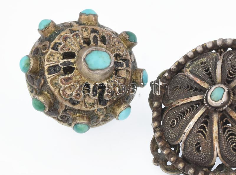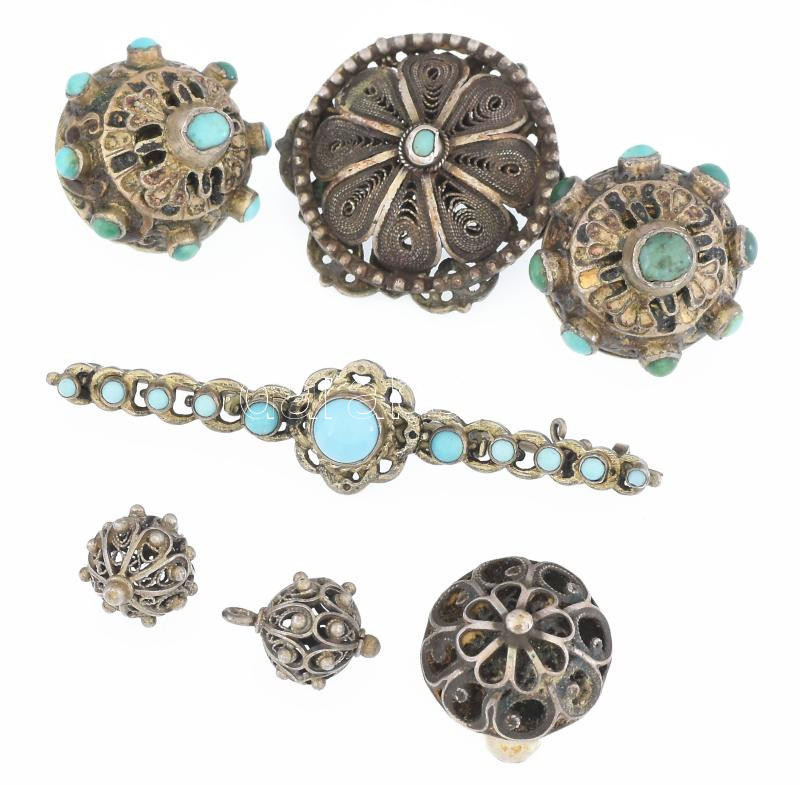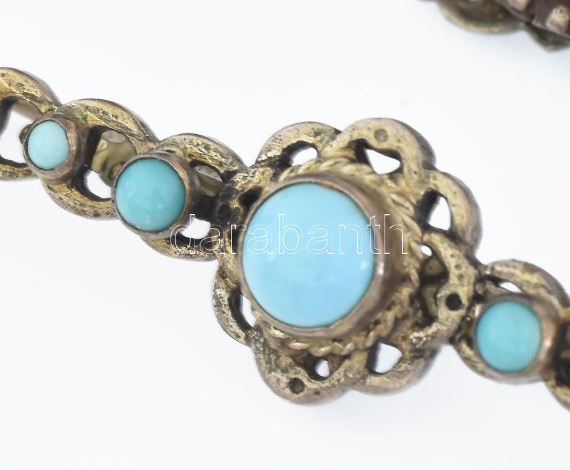 Ezüst (Ag) vegyes tétel türkizzel, jelzéssel és jelzés nélkül, bruttó: 35,5 g