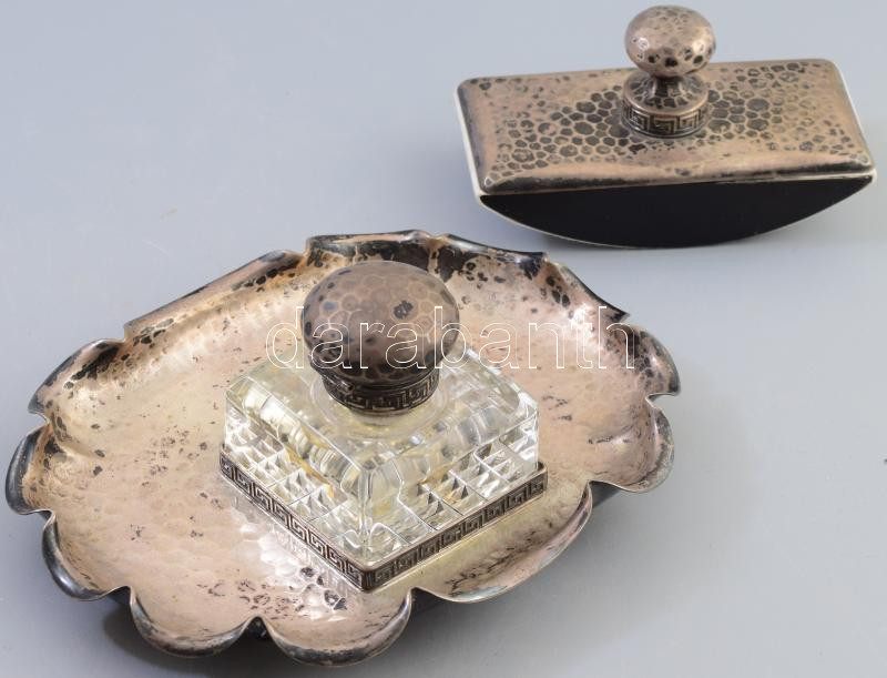 Jelzett ezüst (Ag) Lodholz Freiburg Íróasztali tolltartó, tintatartó és itatós tapper készlet. 20x16 cm