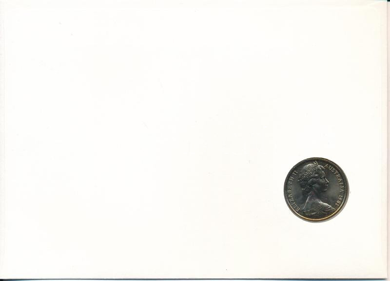 Australia 1981. 20 Pence Cu-Ni "Elizabeth II" in Norfolk Island envelope with stamp, with German description C:UNC