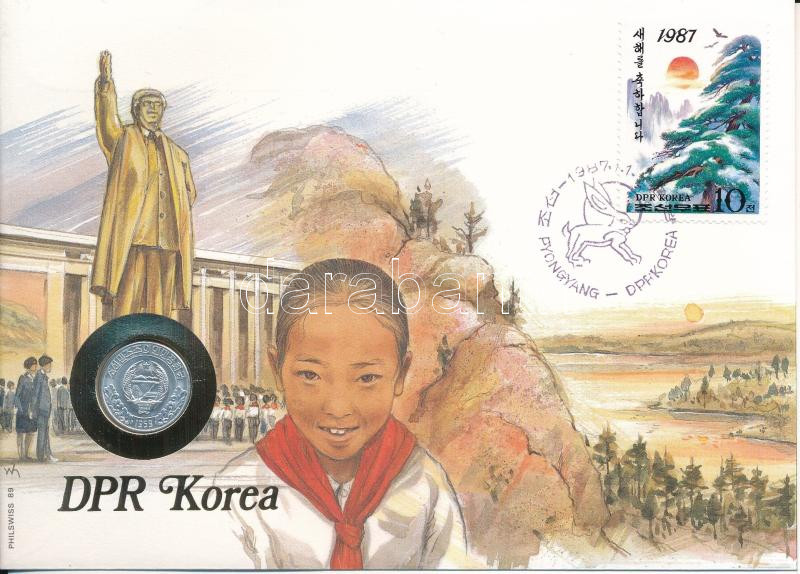 Észak-Korea 1959. 10ch felbélyegzett borítékban, alkalmi bélyegzéssel,... https://www.darabanth.com/en/475-Online-auction/475.0/Numismatics/Envelopes-with-Coins-and-Banknotes~2000006/Eszak-Korea-1959-10ch-felbelyegzett-boritekban-alkalmi-belyegzessel-nemet-nyelvu-leiras~II3187615