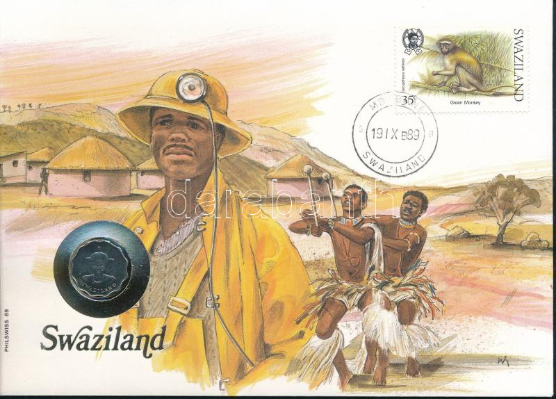 Szváziföld 1986. 5c Cu-Ni felbélyegzett borítékban, bélyegzéssel, néme... https://www.darabanth.com/en/475-Online-auction/475.0/Numismatics/Envelopes-with-Coins-and-Banknotes~2000006/Szvazifold-1986-5c-Cu-Ni-felbelyegzett-boritekban-belyegzessel-nemet-nyelvu-leirassal-~II3187599