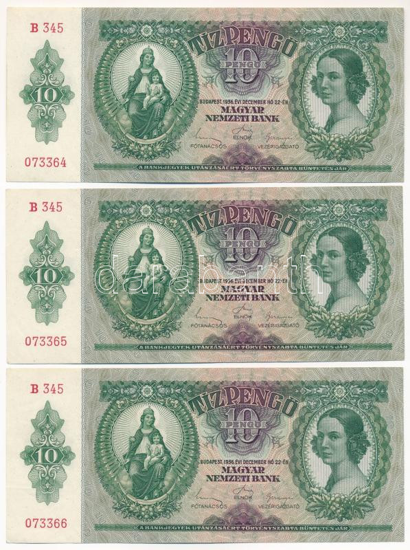 1936. 10P (3x) sorszámkövetők "B 345 073364 - B 345 073366" ...