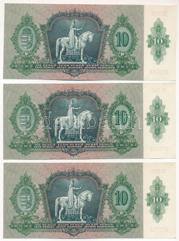 1936. 10P (3x) sorszámkövetők "B 345 073364 - B 345 073366" T:F szép papír Adamo P9
