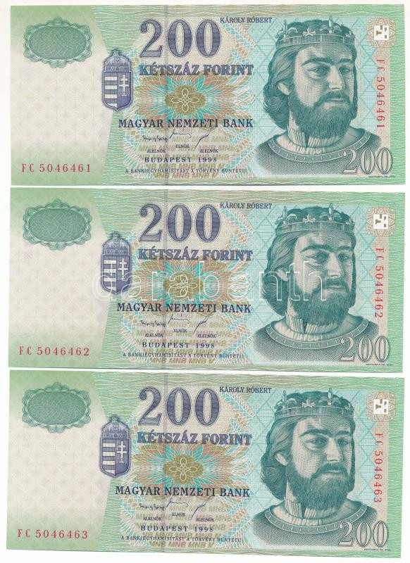 1998. 200Ft (3x) sorszámkövetők "FC 5046461 - FC 5046463" T:...