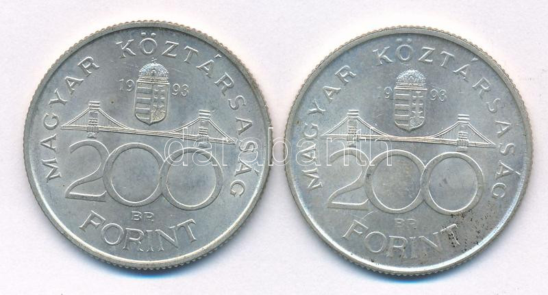 1993. 200Ft Ag "MNB" (2x) T:AU patina