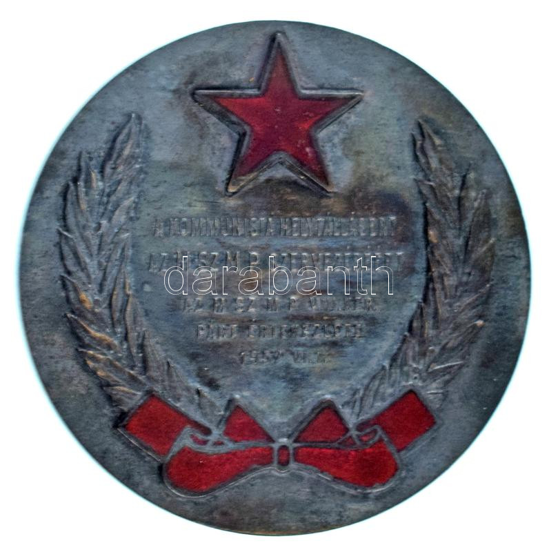 Description: 1957. "A kommunista helytállásért, az MSZMP szervezéséért - az MSZMP VIII. kerületi párt értekezlete" részben zománcozott fém emlékérem eredeti tokban (60mm) T:XF kis zománchibák