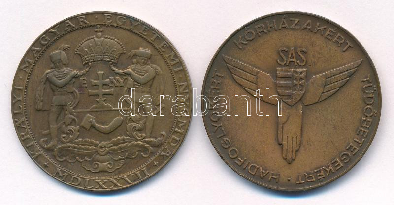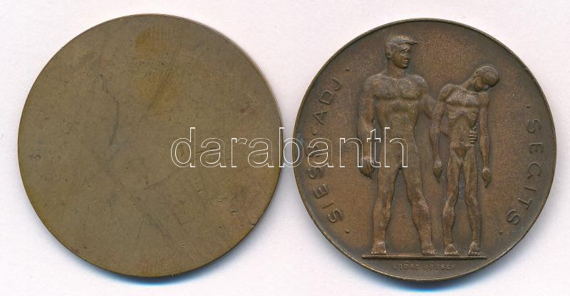 Description: Loósz József (1908-1985.) 1947. "SAS - Hadifoglyokért, kórházakért, tüdőbetegekért / Siess-Adj-Segíts" bronz emlékérem (40mm) + Szántó Gergely (1886-1962) ~1920-1930. "Királyi Magyar Egyetemi Nyomda" egyoldalas aranyozott bronz emlékérem (40mm) T:AU,XF