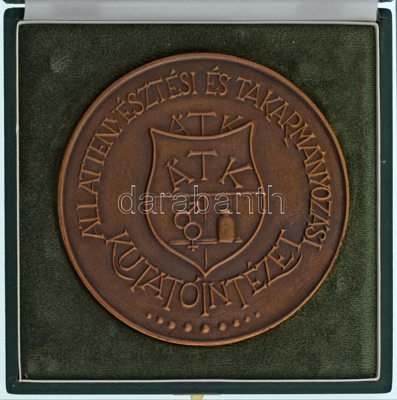 Description: Melocco Miklós (1935-) 1996. Herceghalom - Tangl Ferenc / Állattenyésztési és Takarmányozási Kutatóintézet" bronz emlékplakett eredeti dísztokban (120mm) T:UNC,AU