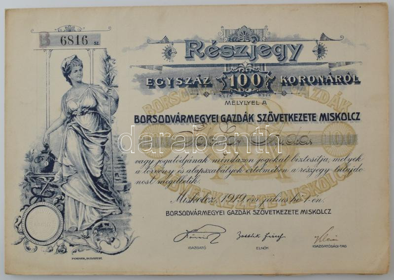 https://www.darabanth.com/en/475-Online-auction/475.0/Numismatics/Shares-and-Tickets~2000007/Miskolc-1919-Borsodvarmegyei-Gazdak-Szovetkezete-Miskolcz-nevre-szolo-reszjegye-100K-rol-~II3191624