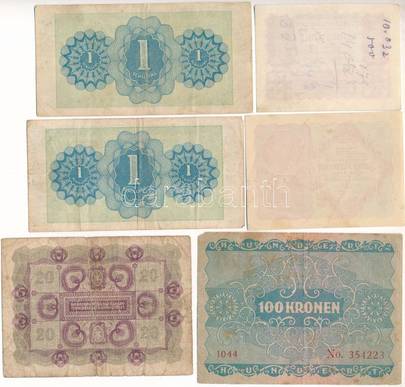 Ausztria 1922. 1K + 2K + 20K + 100K + 1944. 1Sch (2x) T:AU-VG az egyik...