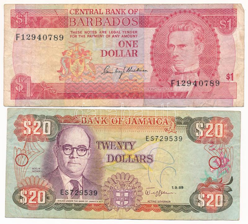 Barbados DN (1973) 1$ + Jamaika 1989. 20$ T:F,VG
