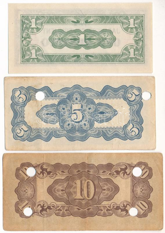 Fülöp-szigetek / Japán megszállás DN (1942) 1c + 5c lyukasztva + 10c lyukasztva T:AU,F Philippines / Japanese Occupation ND (1942) 1 Centavo + 5 Centavos holed + 10 Centavos holed C:AU,F Krause P#102-104