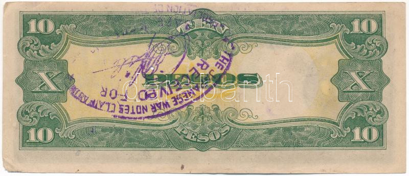 Fülöp-szigetek / Japán megszállás DN (1943) 10P hátoldalán kék felülbé... https://www.darabanth.com/en/475-Online-auction/475.0/Numismatics/Worldwide-banknotes~2000016/Fulop-szigetek-Japan-megszallas-DN-1943-10P-hatoldalan-kek-felulbelyegzessel-TXF-Phi~II3205953