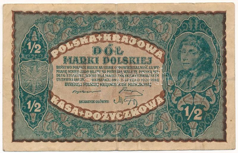 Lengyelország 1920. 1/2M T:F Poland 1920. 1/2 Marek C:F Krause P#30