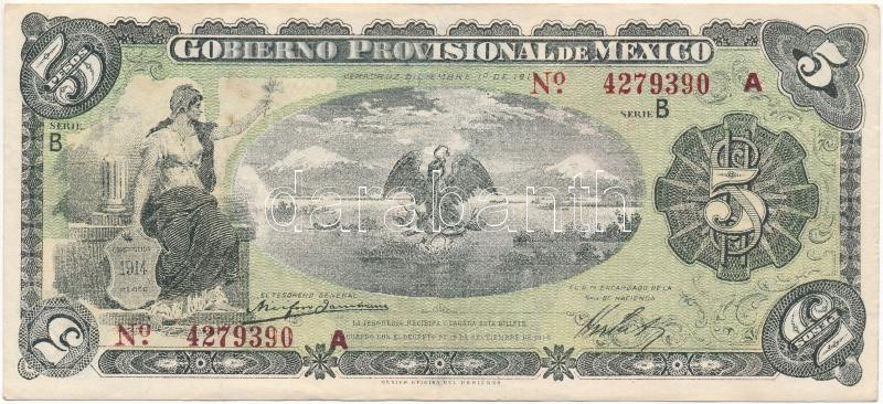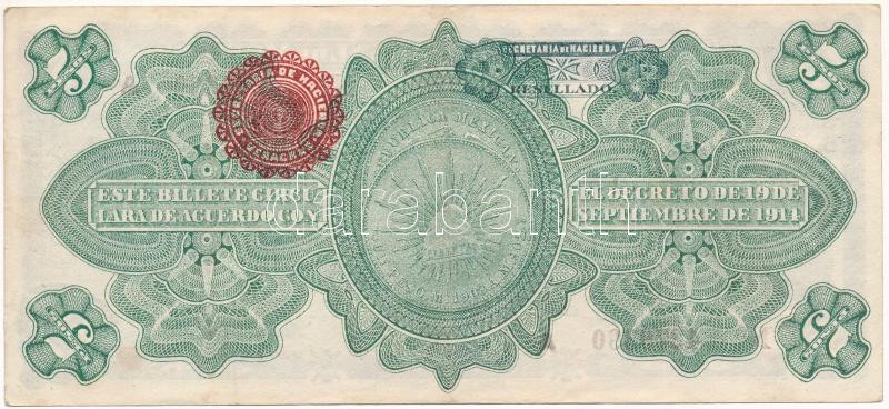 Description: Mexikó / Gobiernói Ideiglenes Kormány 1914. 5P T:F kis folt, egyébként erős papír