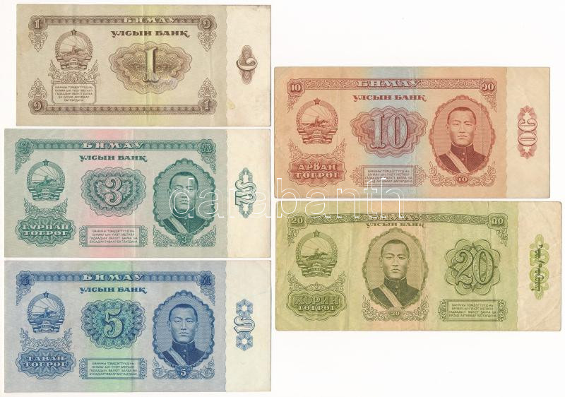 https://www.darabanth.com/en/475-Online-auction/475.0/Numismatics/Worldwide-banknotes~2000016/Mongolia-1966-1T-20T-5xklf-TF-VG--Mongolia-1966-1-Togrog-20-Togrog-5xdiff-CF-VG~II3207600