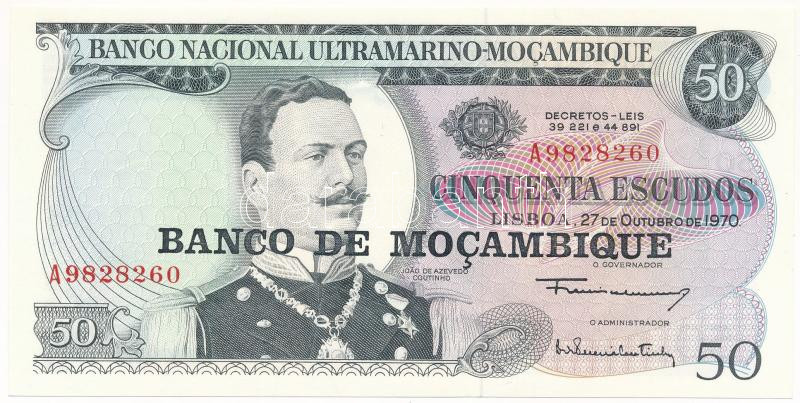 Mozambik 1976. (1970) 50E fekete "BANCO DE MOCAMBIQUE" felül... https://www.darabanth.com/en/475-Online-auction/475.0/Numismatics/Worldwide-banknotes~2000016/Mozambik-1976-1970-50E-fekete-BANCO-DE-MOCAMBIQUE-felulbelyegzessel-TAU-Mozambique-1976-~II3207921