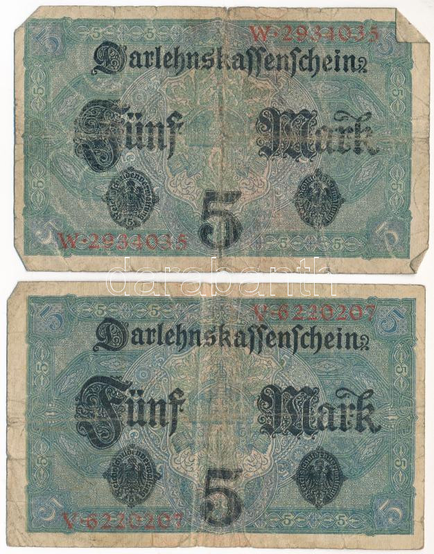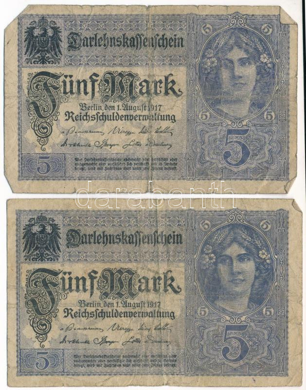 Német Birodalom 1917. 5M "7 jegyű sorozatszám" (2db) T:VG Ge...