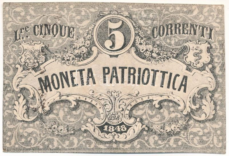 Olasz Államok / Velence / Moneta Patriottica 1848. 5L hátoldalon bélye... https://www.darabanth.com/en/475-Online-auction/475.0/Numismatics/Worldwide-banknotes~2000016/Olasz-Allamok-Velence-Moneta-Patriottica-1848-5L-hatoldalon-belyegzessel-TXF-Italian-Stat~II3208287