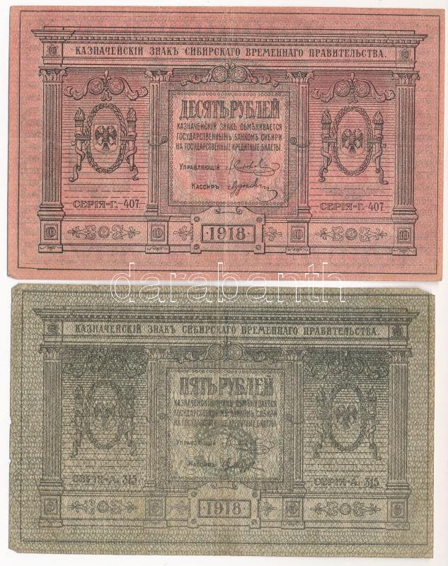 Oroszország / Polgárháború / Szibéria és Urál / Ideiglenes Szibériai Igazgatás 1918. 5R + 10R T:F Russia / Civil War / Siberia and Urals / Provisional Siberian Administration 1918. 5 Rubles + 10 Rubles C:F Krause S817; S818