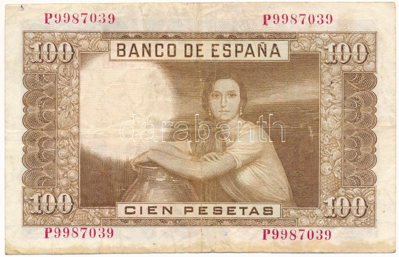 https://www.darabanth.com/en/475-Online-auction/475.0/Numismatics/Worldwide-banknotes~2000016/Spanyolorszag-1953-100P-TF-folt-tulyuk-Spain-1953-100-Pesetas-CF-spot-pinholes-Krause-P2314~II3209631