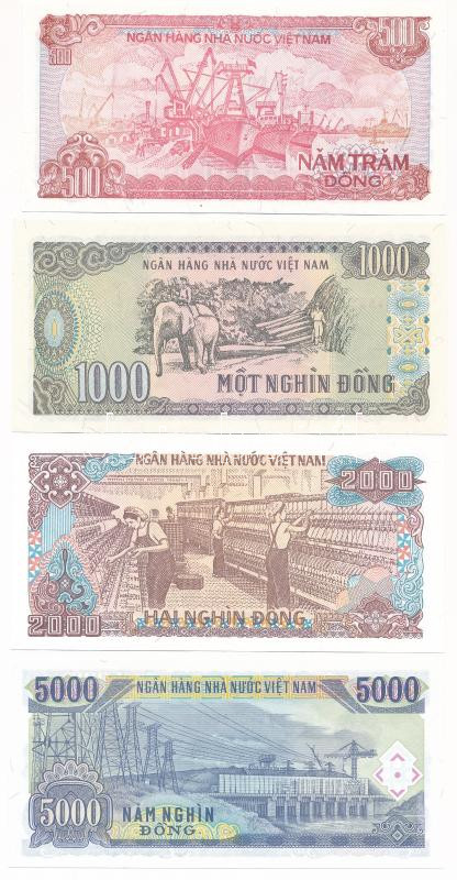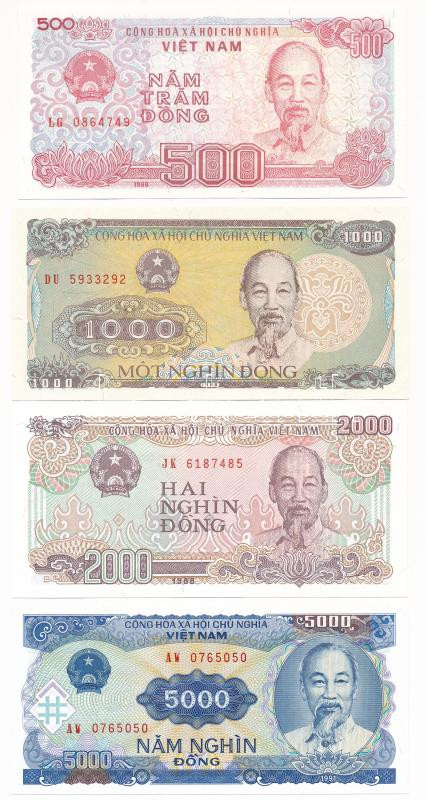 Vietnam 1988. 500 Dong - 2000 Dong + 1991. 5000 Dong (4xdiff) C:UNC