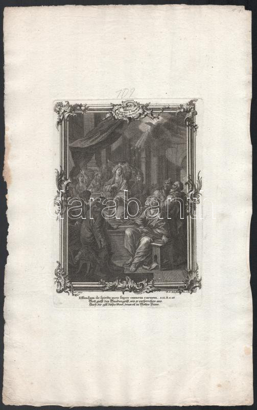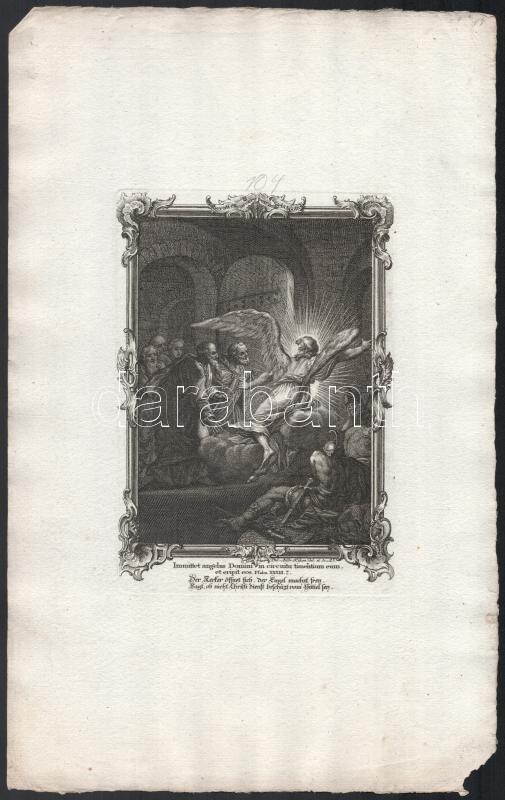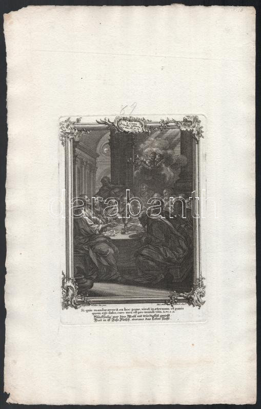 Description: cca 1750-1800 5 db bibliai-egyházi témájú metszet (utolsó vacsora stb.), egyik Tintoretto után, rézmetszet, papír, jelzett a metszeten, latin és német nyelvű feliratokkal, lap széle részben kissé foltos, 20x14,5 cm.