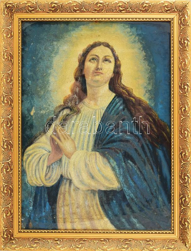 Jelzés nélkül: Mária. Olaj, vászon, sérült. Dekoratív, üvegezett faker...