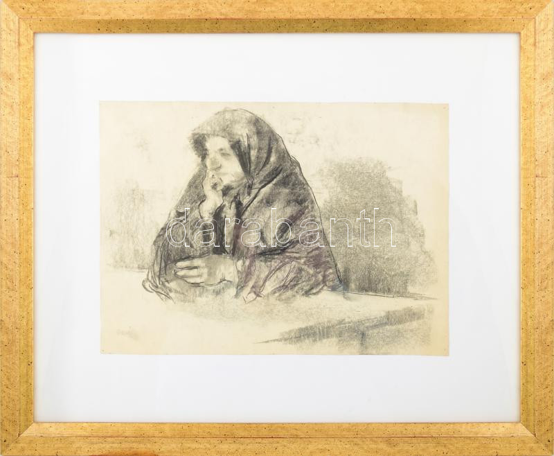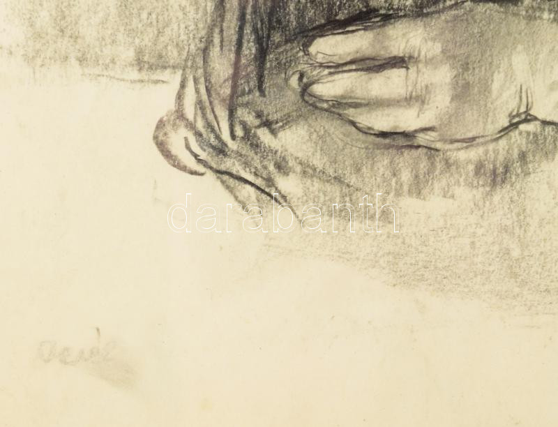 Aczél Ilona (1929-2000): Merengő. Szén, papír, jelzett. Üvegezett, dek...